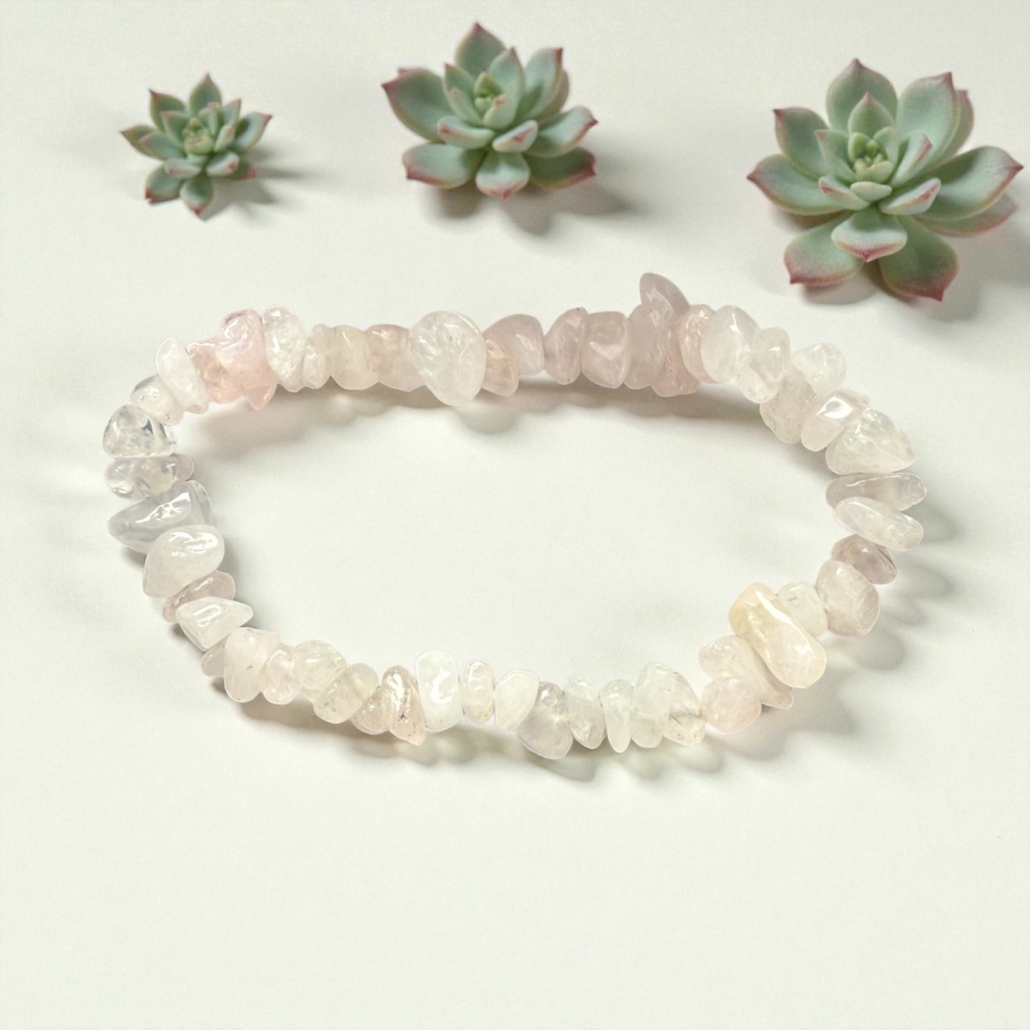 Rose Quartz small Angel wing pendant on a wax cord chain & Rose Quartz crystal chip bracelet set comes gift boxed.